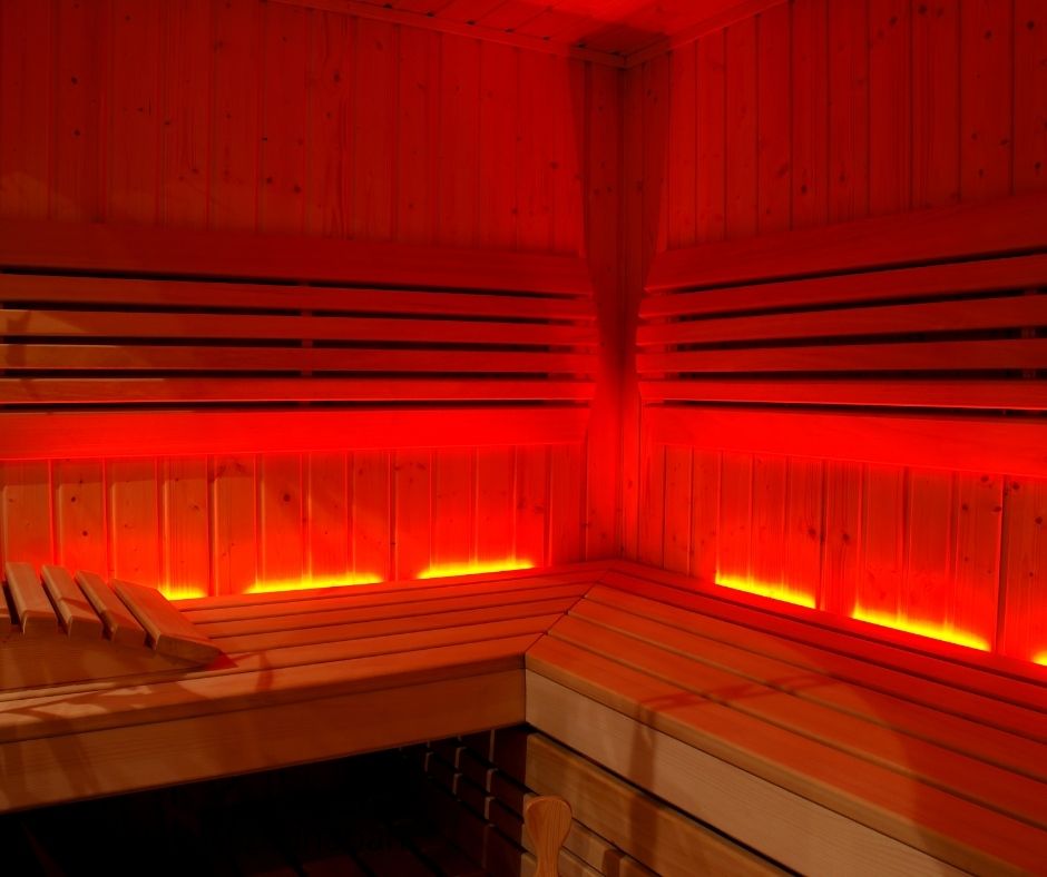 A színes fények a szaunában nemcsak vizuálisan kellemesek, hanem a szaunázás jótékony hatásait is képesek felerősíteni.